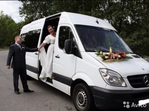 Свадебные перевозки гостей. Заказ свадебного автобуса Мерседес спринтер 13-20 мест.